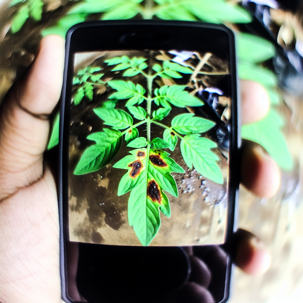 🔍 Dowód wizualny: Zdjęcie liści pomidora z ciemnymi plamami wskazującymi na zarazę ziemniaczaną. - Naturalne środki ochrony: Używaj ekologicznych środków ochrony roślin, aby zwalczać szkodniki. Możesz także stosować domowe sposoby, takie jak roztwór czosnku czy mydła potasowego.