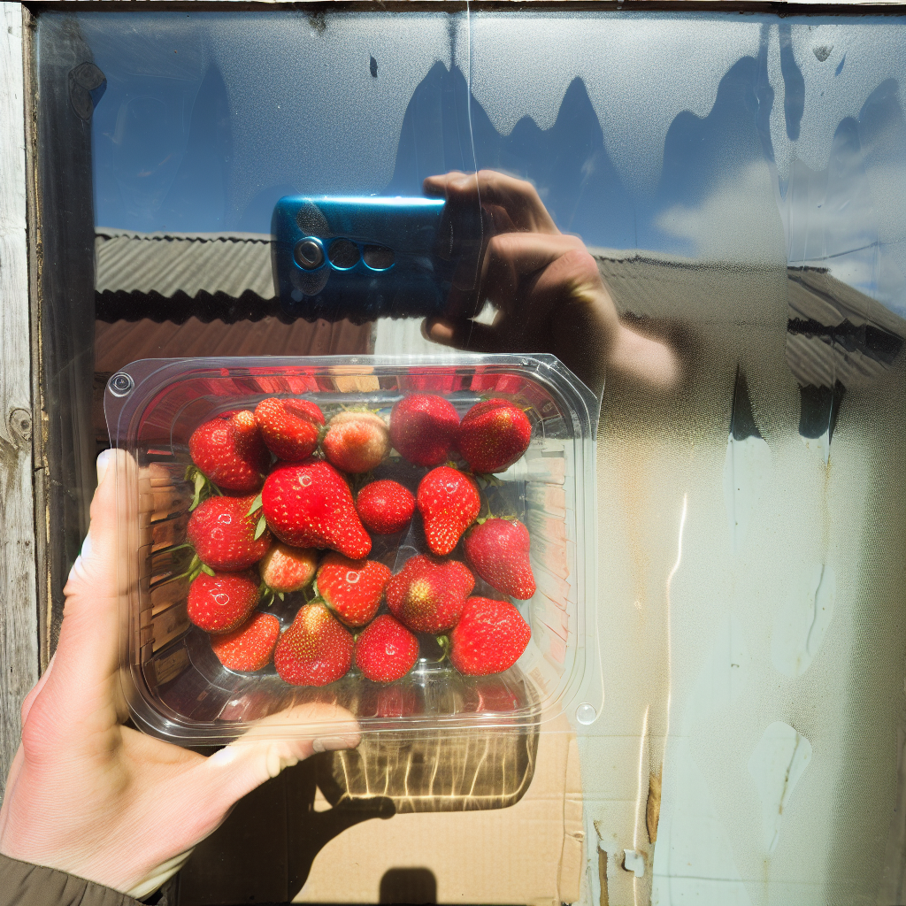 W celu lepszego zrozumienia problemu przelania truskawek, przeprowadziliśmy śledztwo w miejscowych gospodarstwach i sklepach. Jednym z kluczowych dowodów była fotografia przedstawiająca truskawki w plastikowym pojemniku bez otworów drenażowych, gdzie widoczne były krople wody na ściankach
